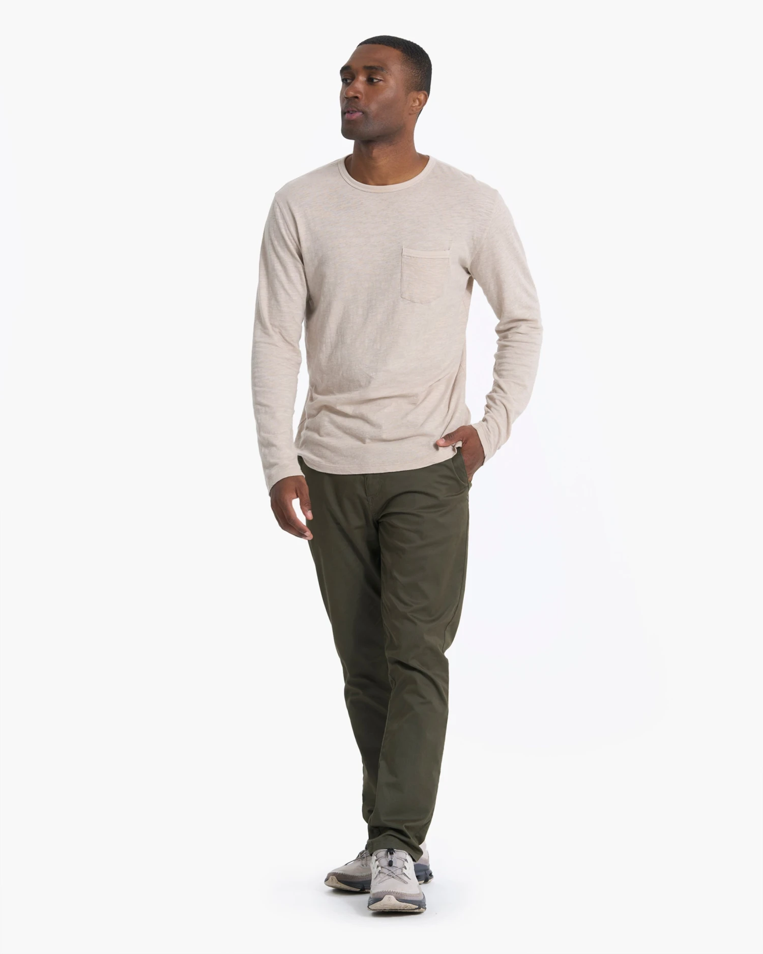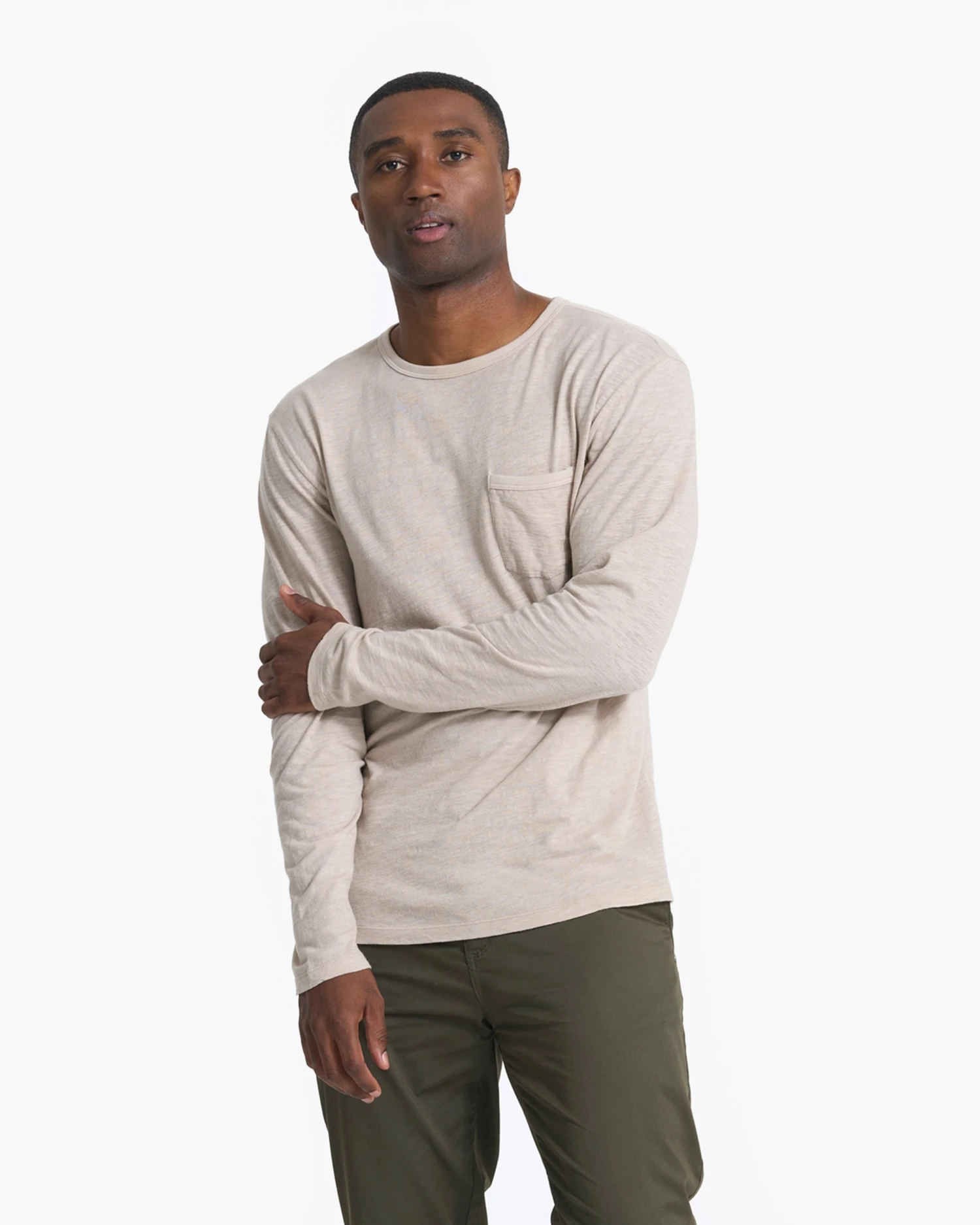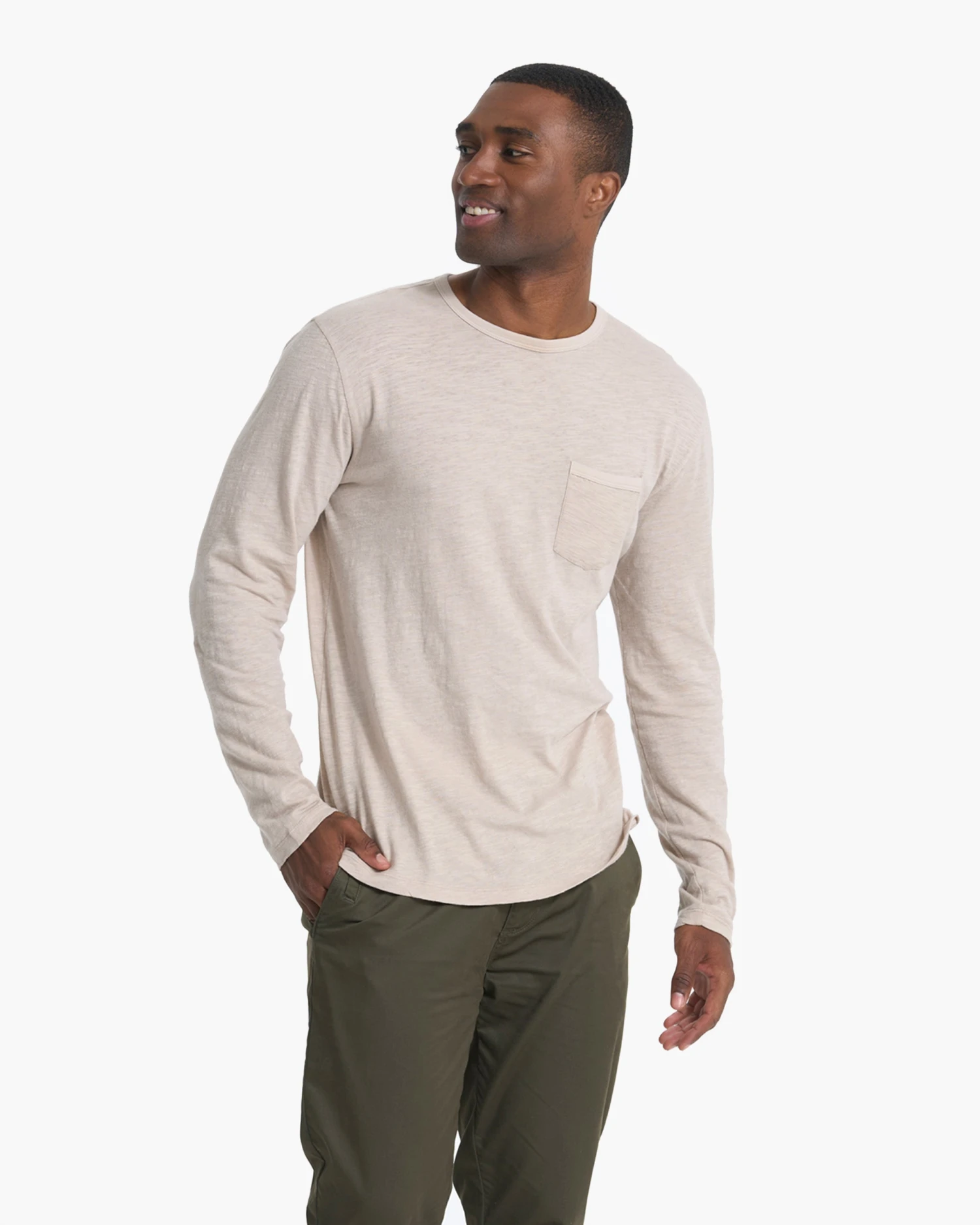The versatility of the Long-Sleeve Rise Tee, made with ultra-soft pima cotton slub is pretty endless, and the quality is clear. With a comfortable ribbed neck and easy front pocket, this one will be a constant in your rotation. Great for travel, commute, and everyday great style.