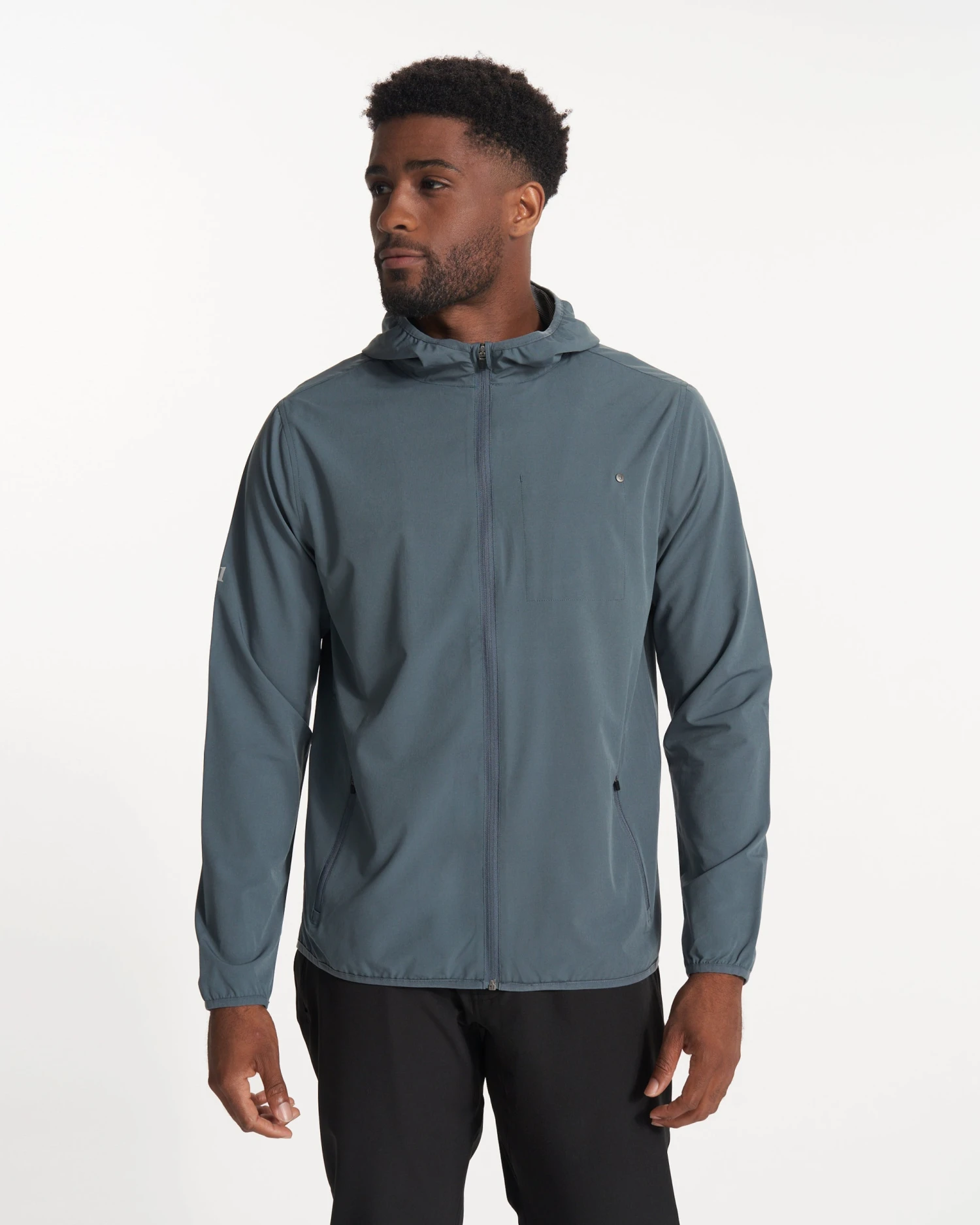 Take on the great outdoors in our men’s hooded Outdoor Trainer Shell jacket. The four-way stretch lightweight performance material is water resistant and moisture wicking. Plus, multiple zip pockets and a reflective logo so you’re covered on all your outside adventures.