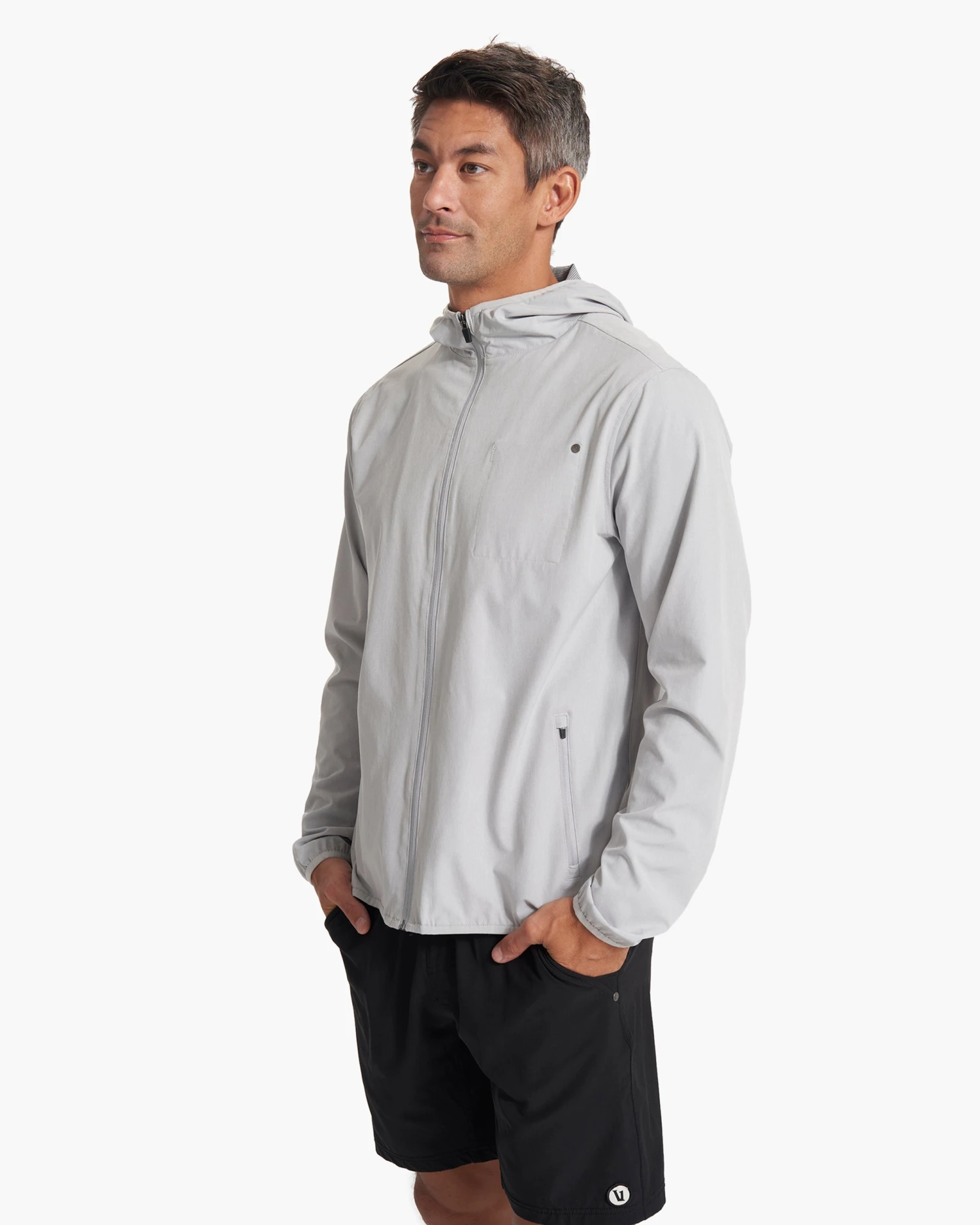 Take on the great outdoors in our men’s hooded Outdoor Trainer Shell jacket. The four-way stretch lightweight performance material is anti-odor and has multiple zip pockets and a reflective logo so you’re covered on all your outside adventures.