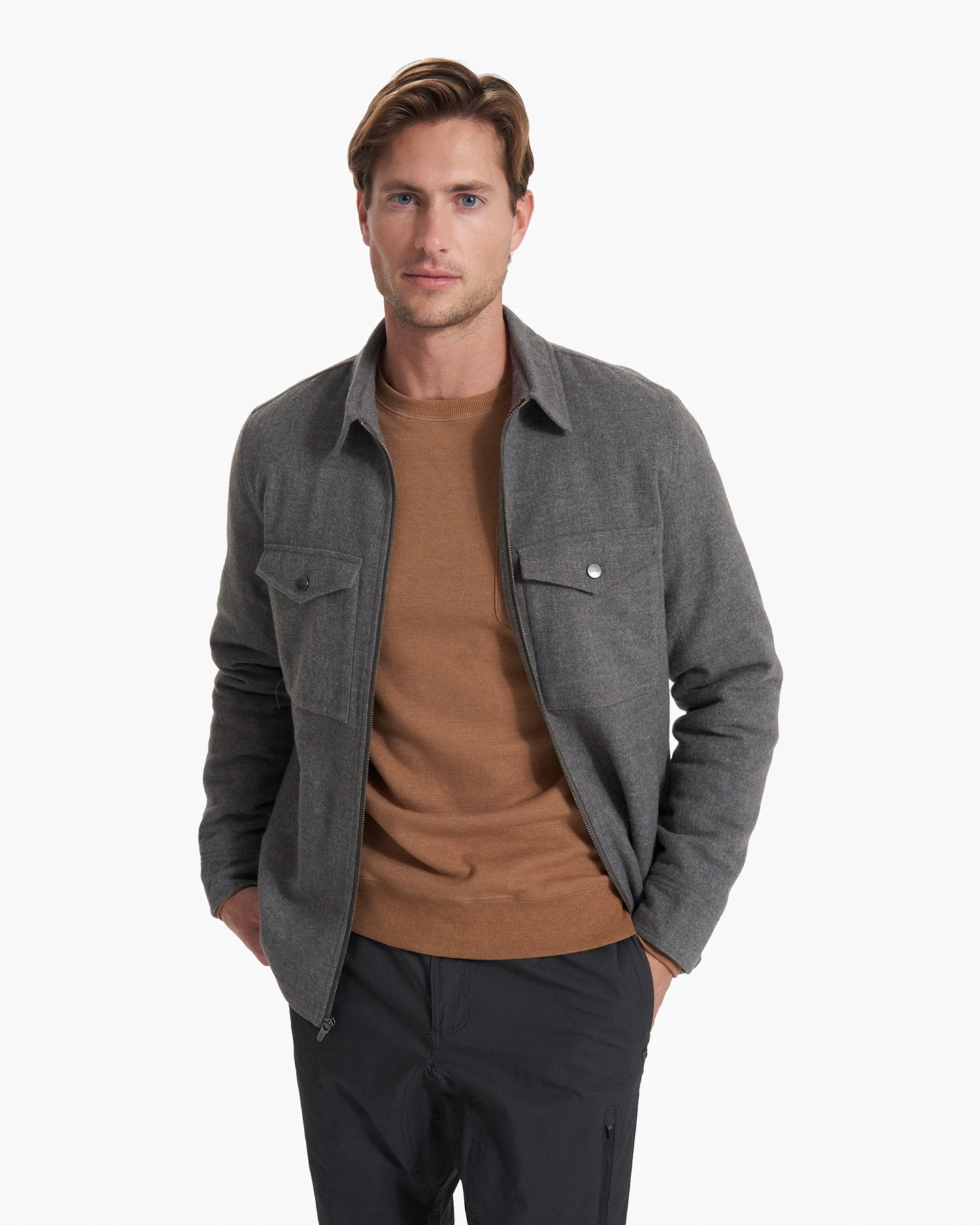 Winter warmth, sophisticated. The Ridgeline is a cold-weather jacket built with recycled blend wool and PrimaLoft™ Eco insulation. Chest flap pockets and side welt pockets offer structure, storage, and everyday wearability.
